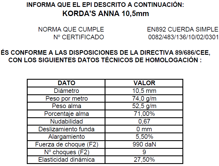 La cuerda dinamica de diametro clasico por excelencia, Anna 10.5 es una cuerda de tacto flexible, agradable y resistente a la abrasion, gracias a los acabados de serie.