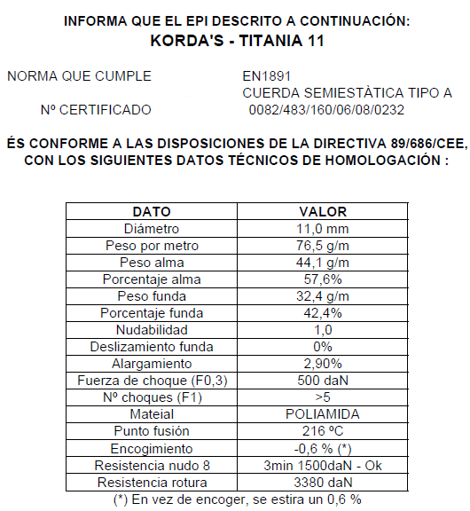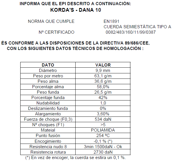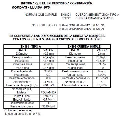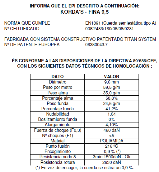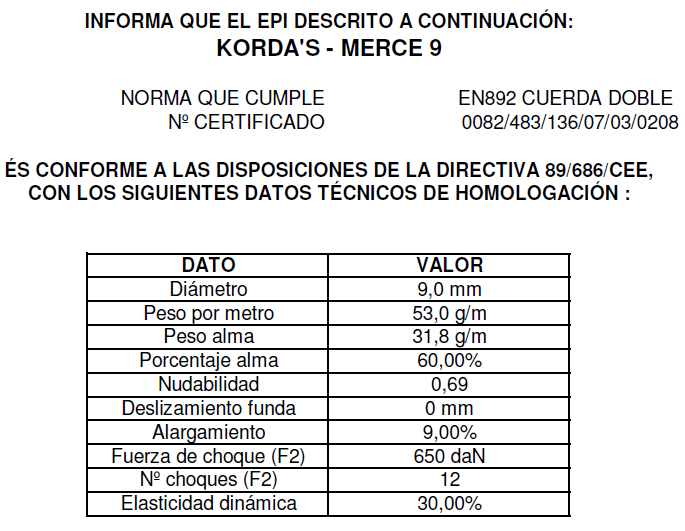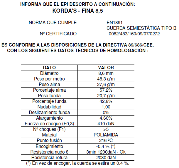 Las cuerdas mas ligeras y de menor volumen de su categoria, excelente relacion entre prestaciones mecanicas y su reducido peso-volumen.