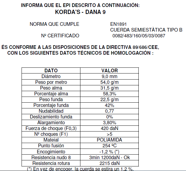 Las cuerdas mas ligeras y de menor volumen de su categoria, excelente relacion entre prestaciones mecanicas y su reducido peso-volumen. -