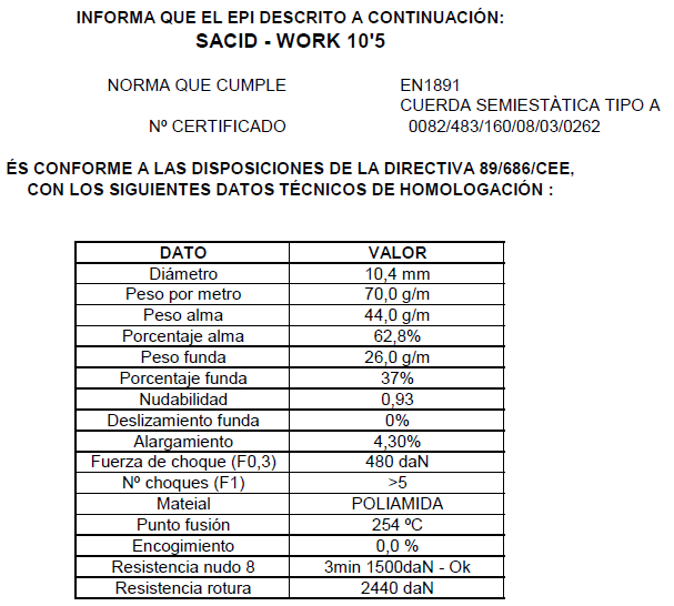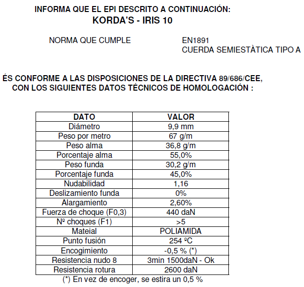 Para los profesionales. Cuerda especialmente indicada para uso intensivo en espeleologia, trabajos verticales y cuerpos especializados en rescate.