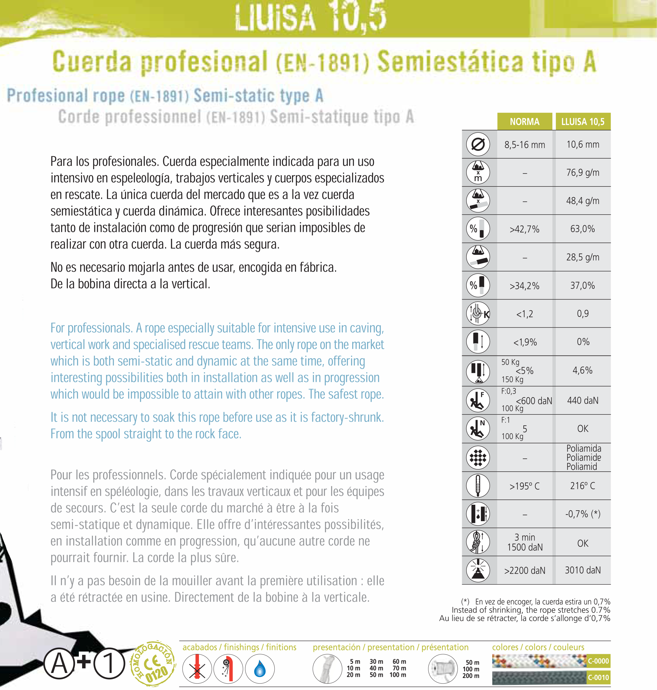 Cuerda especialmente indicada para un uso intensivo en espeleologia, trabajos verticales y cuerpos especializados en rescate.